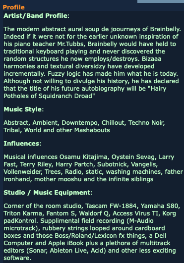 This was the discriptoid for my music web site of the time